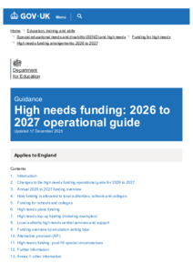 High needs funding 2026 to 2027 operational guide - GOV.UK.pdf Volume/Part: High needs funding operational guide - Published Version Available under License Open Government Licence. Download (1MB) | Preview |