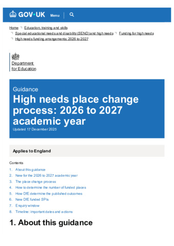 High needs place change process 2026 to 2027 academic year - GOV.UK.pdf Volume/Part: High needs place change process - Published Version Available under License Open Government Licence. Download (313kB) | Preview |