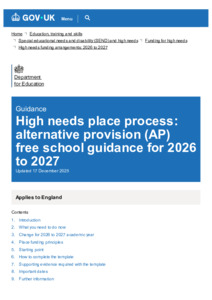 High needs place process alternative provision (AP) free school guidance for 2026 to 2027 - GOV.UK.pdf Volume/Part: High needs place process alternative provision - Published Version Available under License Open Government Licence. Download (207kB) | Preview |
