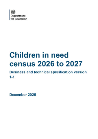 Children in need census 2026 to 2027 : Business and technical specification version 1-1, December 2025.
