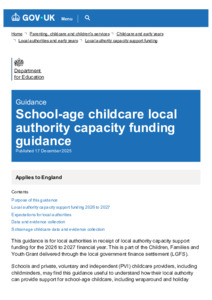 School-age childcare local authority capacity funding guidance.