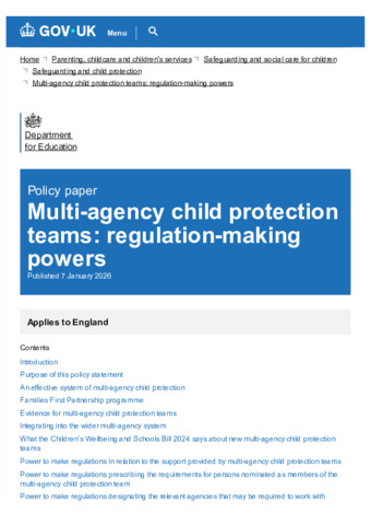 Multi-agency child protection teams : regulation-making powers : Published 7 January 2026.