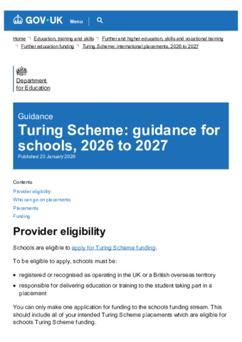 Turing Scheme guidance for schools, 2026 to 2027 - GOV.UK.pdf Volume/Part: Guidance for schools - Published Version Available under License Open Government Licence. Download (233kB) | Preview |