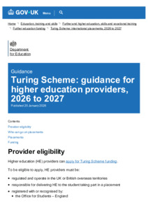 Turing Scheme guidance for higher education providers, 2026 to 2027 - GOV.UK.pdf Volume/Part: Guidance for higher education providers - Published Version Available under License Open Government Licence. Download (230kB) | Preview |