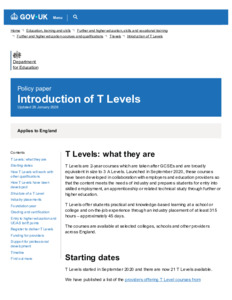 Introduction of T Levels - GOV.UK.pdf - Published Version Available under License Open Government Licence. Download (222kB) | Preview |