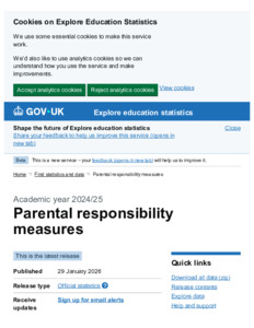 Parental responsibility measures, Academic year 202425 - Explore education statistics - GOV.UK.pdf - Published Version Available under License Open Government Licence. Download (210kB) | Preview |