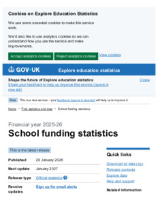 School funding statistics, Financial year 2025-26 - Explore education statistics - GOV.UK.pdf - Published Version Available under License Open Government Licence. Download (272kB) | Preview |
