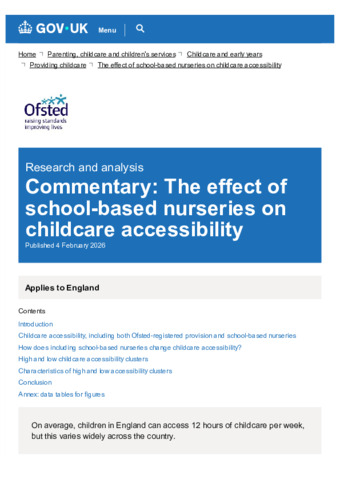 Commentary The effect of school-based nurseries on childcare accessibility - GOV.UK.pdf Volume/Part: Commentary - Published Version Available under License Open Government Licence. Download (4MB) | Preview |