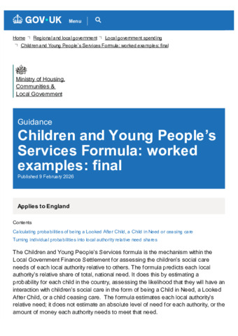 Children and Young People’s Services Formula : worked examples : final : Published 9 February 2026.