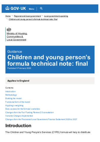 Children and young person’s formula technical note : final : Published 9 February 2026.
