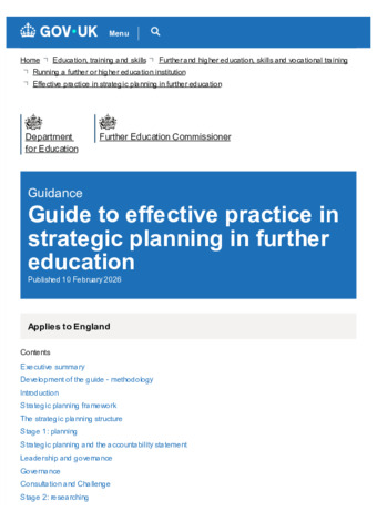 Guide to effective practice in strategic planning in further education : Published 10 February 2026.