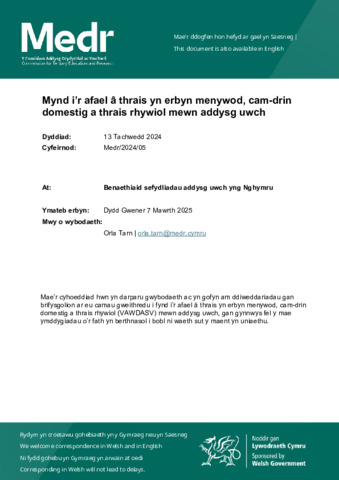M2024_05-Tackling-violence-against-women-domestic-abuse-and-sexual-violence-in-higher-education-Cymraeg.pdf Volume/Part: Welsh language - Published Version Available under License Permission Granted by Copyright Owner. Download (350kB) | Preview |