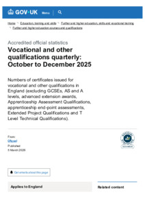 Vocational and other qualifications quarterly October to December 2025 - GOV.UK.pdf Volume/Part: Main document - Published Version Available under License Open Government Licence. Download (204kB) | Preview |