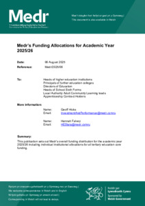 Medr’s Funding Allocations for Academic Year 2025/26.