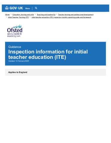 Inspection information for initial teacher education (ITE) - GOV.UK.pdf - Published Version Available under License Open Government Licence. Download (337kB) | Preview |