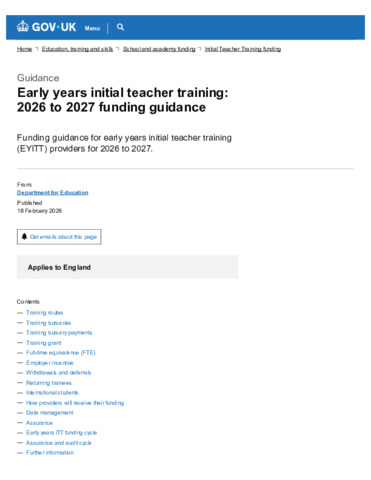 Early years initial teacher training : 2026 to 2027 funding guidance.