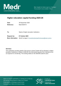 M2025_18-Higher-education-capital-funding-2025-26-Cymraeg.pdf Volume/Part: Welsh language - Published Version Available under License Permission Granted by Copyright Owner. Download (270kB) | Preview |
