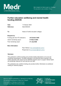 M2025_23-Further-education-wellbeing-and-mental-health-funding-2025_26-Cymraeg.pdf - Published Version Available under License Permission Granted by Copyright Owner. Download (361kB) | Preview |