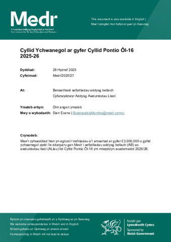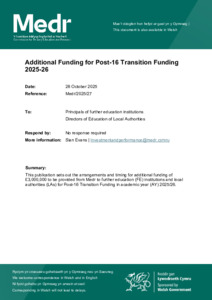 | Additional Information: | Cyllid Ychwanegol ar gyfer Cyllid Pontio Ôl-16 2025-26. |