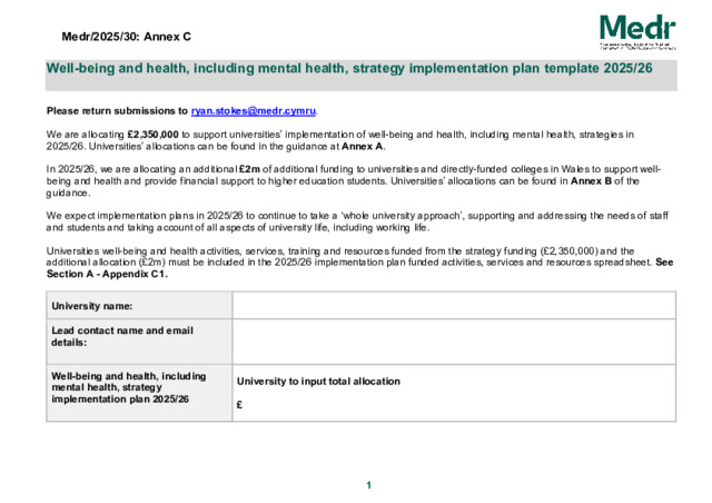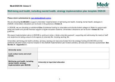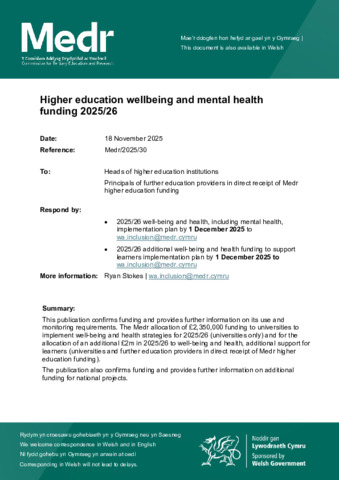 | Additional Information: | This document was converted from DOCX format into PDF format and added to DERA on 20 February 2026. - Cyllid llesiant ac iechyd meddwl addysg uwch 2025/26. |