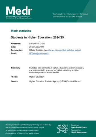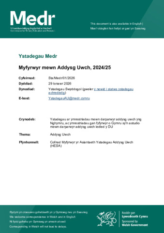 Sta_Medr_01_2026-Students-in-Higher-Education-2024_25-Cymraeg.pdf - Published Version Available under License Permission Granted by Copyright Owner. Download (333kB) | Preview |
