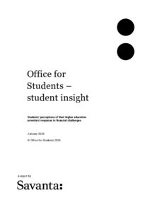 Office for Students: student insight : Students’ perceptions of their higher education providers’ response to financial challenges : January 2026.