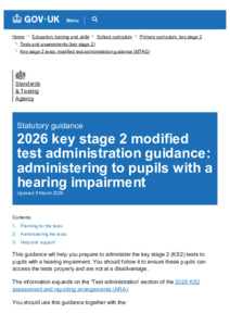 2026 key stage 2 modified test administration guidance : administering to pupils with a hearing impairment : Updated 9 March 2026.