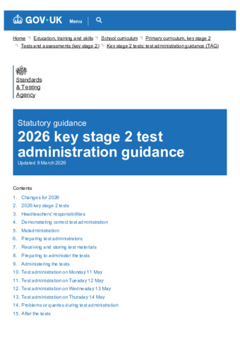 2026 key stage 2 test administration guidance : Updated 9 March 2026.