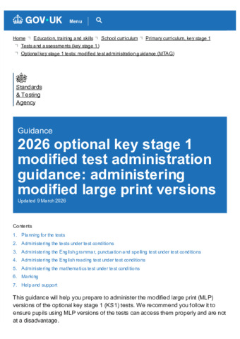 2026 optional key stage 1 modified test administration guidance administering modified large print versions - GOV.UK.pdf - Published Version Available under License Open Government Licence. Download (260kB) | Preview |