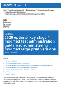 2026 optional key stage 1 modified test administration guidance : administering modified large print versions : Updated 9 March 2026.