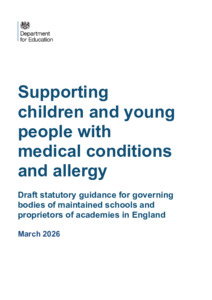 Supporting children and young people with medical conditions and allergy.pdf Volume/Part: Draft guidance - Published Version Available under License Open Government Licence. Download (2MB) | Preview |