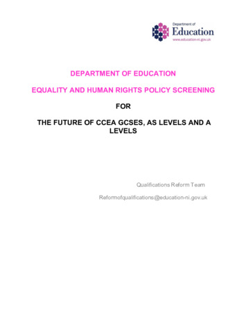 Equality Screening - The Future of CCEA GCSEs AS levels and A levels_0.pdf Volume/Part: Equality and human rights policy screening - Published Version Available under License Open Government Licence. Download (358kB) | Preview |