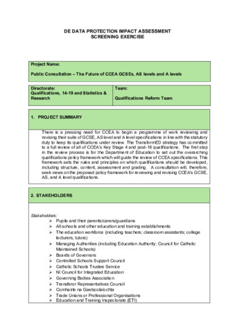 Data Protection Impact Assessment (DPIA) - The Future of CCEA GCSEs, AS levels and A levels.pdf Volume/Part: Data protection impact assessment - Published Version Available under License Open Government Licence. Download (225kB) | Preview |