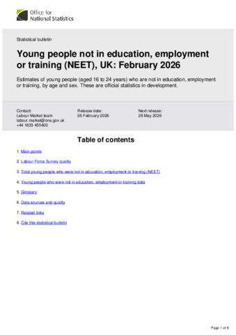 Young people not in education, employment or training (NEET), UK February 2026.pdf - Published Version Available under License Open Government Licence. Download (163kB) | Preview |
