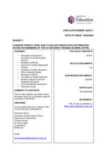 Circular 2026-11 Salary Bands for Member Contribution Rates 01 April 2026.pdf - Published Version Available under License Open Government Licence. Download (176kB) | Preview |