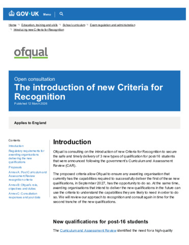 The introduction of new Criteria for Recognition : Published 12 March 2026.