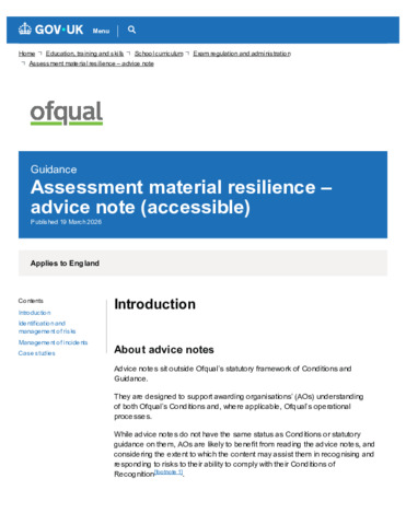 Assessment material resilience : advice note (accessible) : Published 19 March 2026.