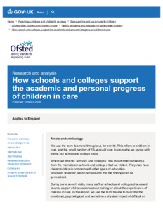 How schools and colleges support the academic and personal progress of children in care - GOV.UK.pdf - Published Version Available under License Open Government Licence. Download (503kB) | Preview |