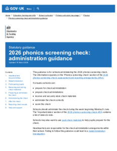 2026 phonics screening check administration guidance - GOV.UK.pdf - Published Version Available under License Open Government Licence. Download (321kB) | Preview |