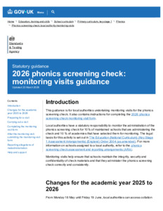 2026 phonics screening check monitoring visits guidance - GOV.UK.pdf Volume/Part: Monitoring visits guidance - Published Version Available under License Open Government Licence. Download (350kB) | Preview |