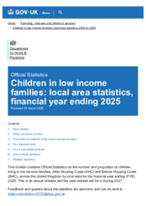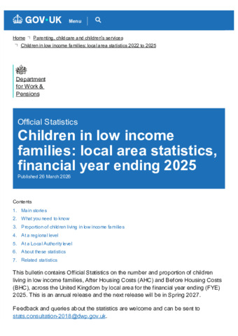 Children in low income families local area statistics, financial year ending 2025 - GOV.UK.pdf - Published Version Available under License Open Government Licence. Download (394kB) | Preview |