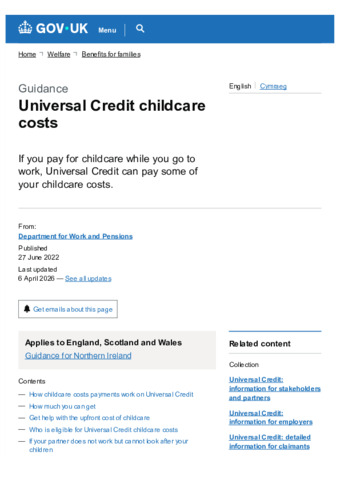 Universal Credit childcare costs : last updated 6 April 2026.
